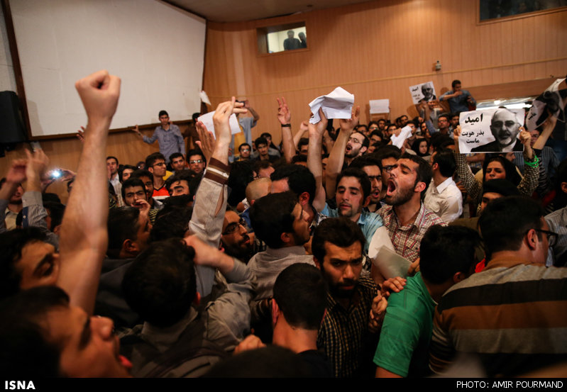 قبل از ورود میهمانان، دانشجویان دو دسته شده بودند، ولاییان عزیز-حامیان دکتر جلیلی- و اونوری ها!!!